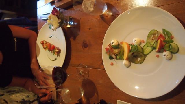 Notre repas s'est entamé avec une délicieuse petite soupe froide aux avocats et concombres. Un brin huileuse, celle-ci nous a cependant bien ouvert l'appétit.