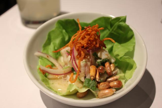 Du menu dégustation qu'on m'a servi lors de ma visite, il y a l'anticucho de filet mignon can tallarines salsa huancaina que j'ai un peu moins apprécié; il était trop salé, et les goûts pas très équilibrés, ainsi que les desserts. Ces derniers, gâteau moelleux au trois laits (tres leches), cheese pie au lucuma (tarte au fromage et lucuma : fruit péruvien crémeux et sucré), m'ont laissé un peu indifférente.