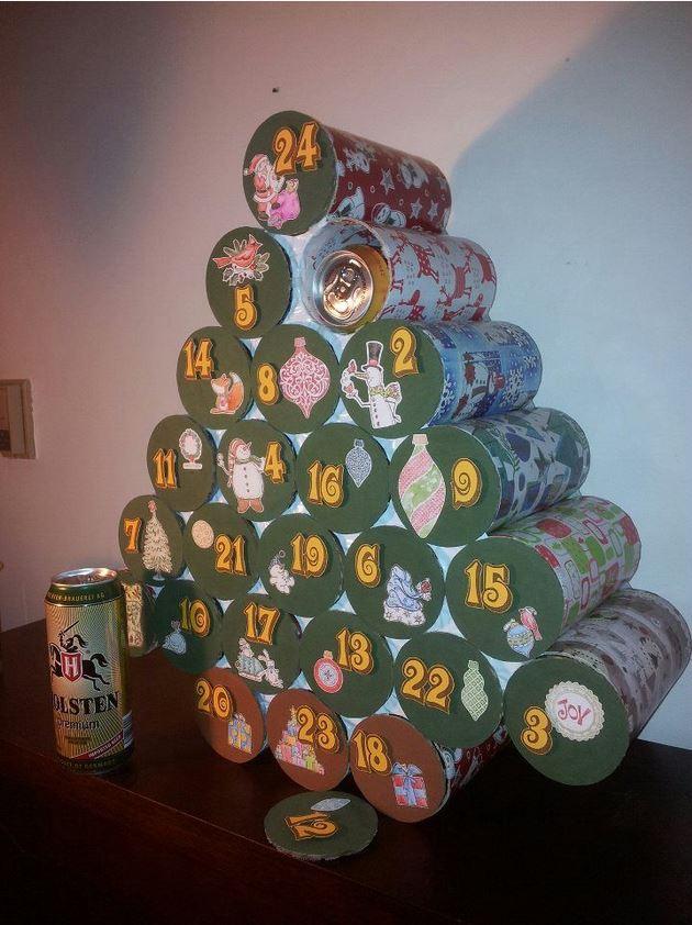 Les plus motivés couperont des tuyaux en carton et les colleront pour former un sapin. Ils y inséreront 24 bières différentes pour chaque jour avant Noël. Voir le tutoriel ici. Pour les plus lazy, il reste la caisse de 24 que l'on découpe puis numérote et bingo, un calendrier de l'avent en moins de 10 minutes!