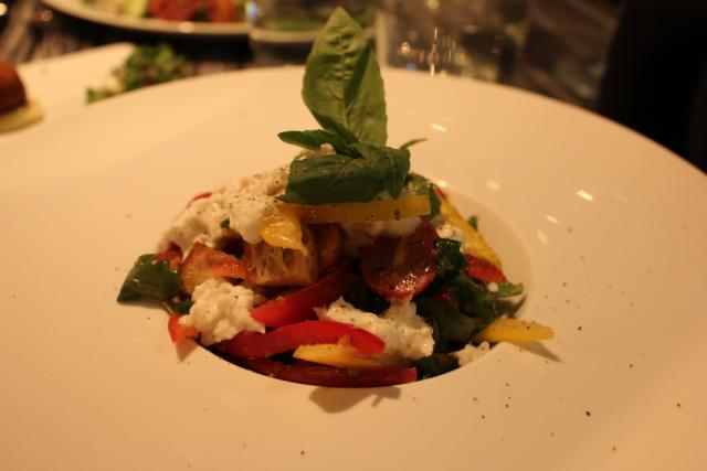 Les croquettes de morue, elles, nous ont semblées un peu trop salées, mais on a adoré la vinaigrette aux câpres et fines herbes qui accompagnait la salade panzanella et mozzarella concoctée avec des légumes croquants et bien frais.