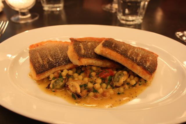 L'entrée de pieuvre, mousseline de patate, salsa verde, elle, nous a charmé avec son huile parfumée au piment, mais on a trouvé la bête un peu coriace et on aurait aimé que notre assiette soit un peu plus chaude. Des pâtes – faites-maison -, ce sont les agnolotti aux châtaignes, lapin braisé, purée de brocoli et orange confite qui sont sorties du lot. Toutefois, on a trouvé le prix un peu élevé (24$) pour la portion servie. Même constat avec le plat de branzino, moules, fregola, fenouil, tomate, et bouillon safrané qui nous a apparu assez petit pour 29$. On aurait également aimé goûter davantage le safran dans l'assiette.