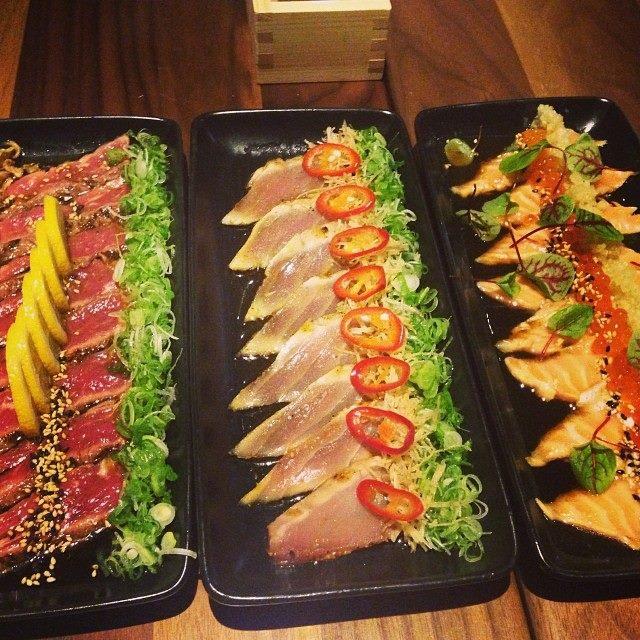 Situé dans le Vieux-Montréal, le Kyo est ouvert le midi et le soir pour vous remplir la panse de bouchées crues. Vous pourrez commander en tout temps des sashimis, au choix du chef, et en soirée les tatakis volent la vedette. Sur la photo, vous pouvez admirer (de gauche à droite) un sashimi de boeuf, un tataki de maguro (thon en japonais) et le tataki saké (de saumon bio). Voici d'ailleurs la critique NIGHTLIFE de l'établissement.