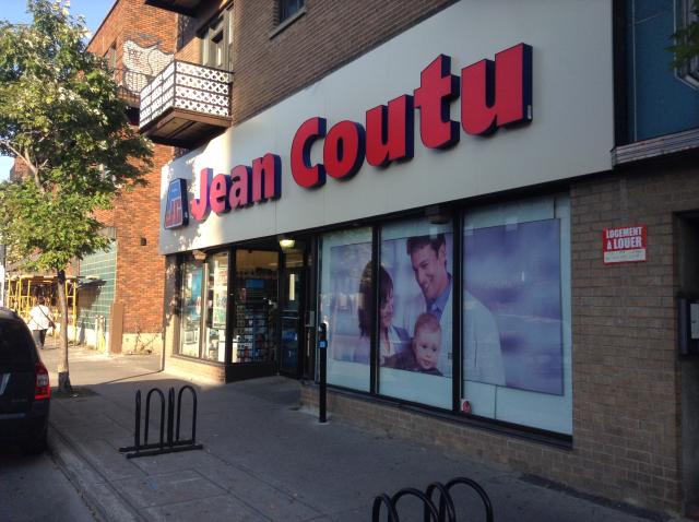 À exactement 48 secondes de marche – même en pognant deux lumières rouges – se trouvent sur Jarry deux Jean Coutu… Afin de nous berner, le pharmacien québécois a misé sur deux infographies bien distinctes.