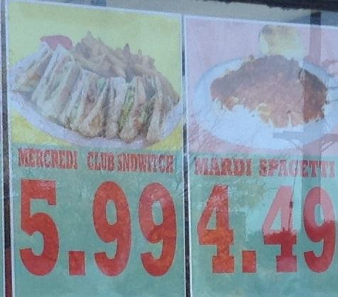 … Et de menus alléchants quotidiens comme un «Club Sndwitch» et un «Spagetti»