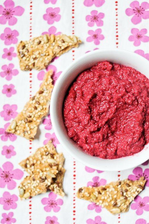 Les pois chiches sont cette fois-ci remplacés par des betteraves. Une touche de cumin apporte saveur et profondeur à la recette. En plus la couleur est ben, ben belle. (photo et recette : chocolate&zucchini)
