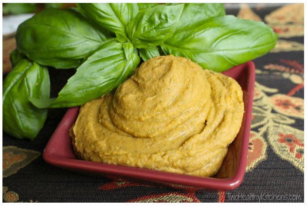 Saveurs italiennes de basilic et de tomates séchées se marient parfaitement aux haricots blancs. Une trempette facile à réaliser! (photo et recette : twohealthykitchens)