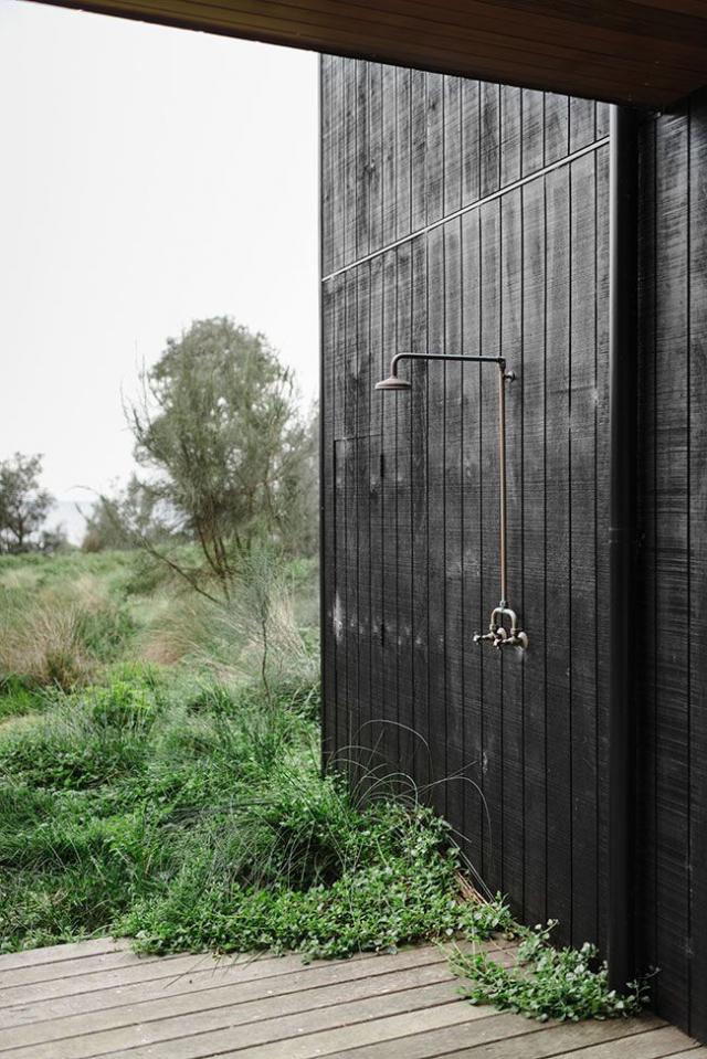 3. Je reviens au revêtement extérieur de maison: avouez que cette douche extérieure fait rêver, non? Il faut voir le reste de la maison, elle est située en Australie et elle est magnifique. (My Scandinavian Home)