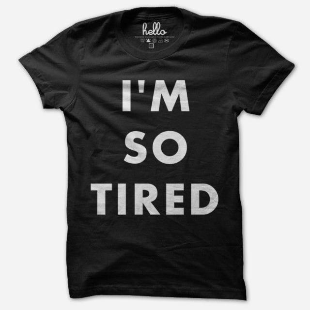 9. Toujours de mise: un classique t-shirt noir. Celui-ci représente bien la moitié de mon entourage à la suite du changement d'heure. (Hello)