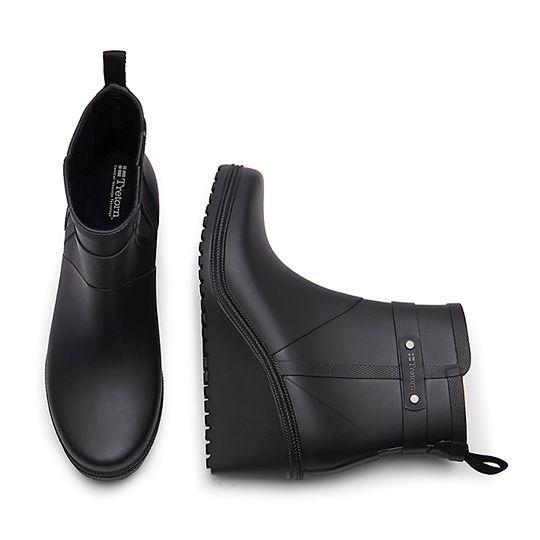 4. Bon, reste qu'en ce moment, ici, la neige fond, les rues sont brunes de gadoue et que ces petites bottes de pluie à semelle compensée sont idéales pour garder les pieds au sec tout en gardant un look délicat. (Tretorn)