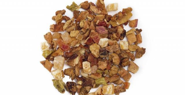 Thé blanc avec abricots, feuilles de ronce, carthame.