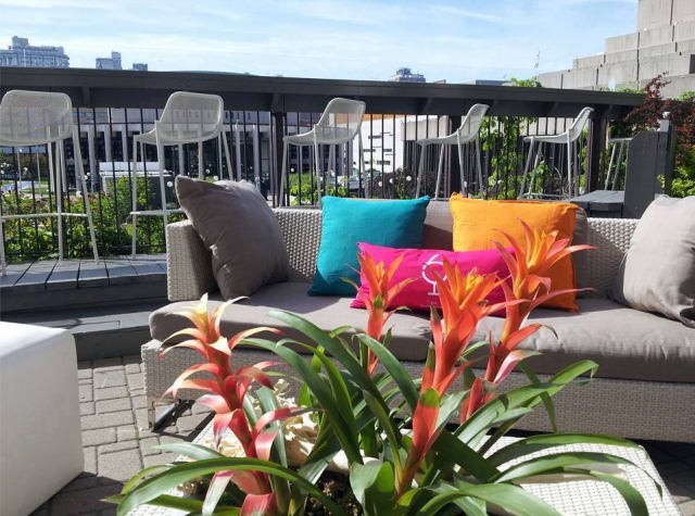 La terrasse en hauteur qui surplombe le Quartier des spectacles est idéale lors des festivals et divers évènements qui se déroulent sur ce quadrilatère achalandé.