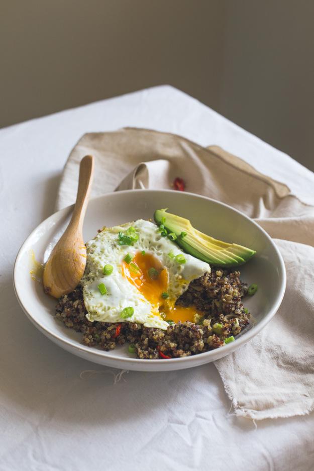 À notre humble avis, n'importe quel plat avec un oeuf frit est un gros winner. La combinaison de l'oeuf et de l'avocat est tout simplement divine. En plus, les ingrédients simples utilisés dans la recette se retrouvent probablement déjà dans notre garde-manger/notre frigo, donc c'est un bon repas dépanneur pour les soirs de semaine. (recette et photo : erinmadethis)