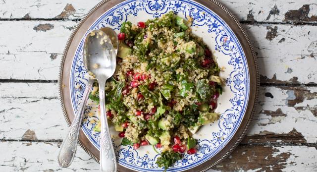 On aime bien les dîners rapides qui consistent à mettre un tas d'ingrédients santé et goûteux dans un bol et juste bouffer le tout, sans plus de cérémonie. Celui-ci avec ses flocons d'épeautre et sa bonne dose d'avocat est parfait pour ton lunch! (recette et photo : ricardo)