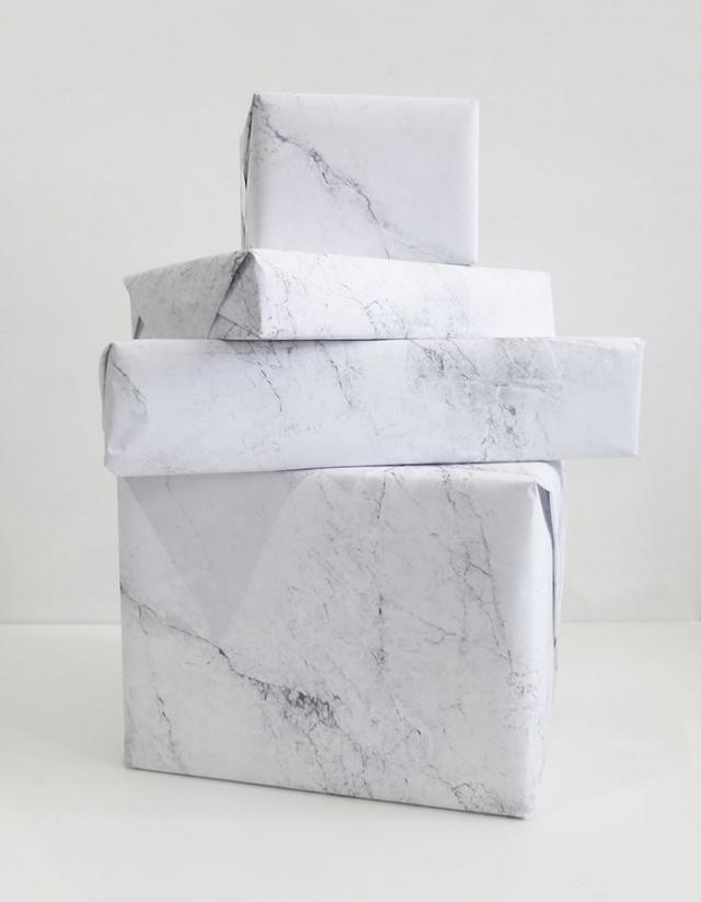 Superbe papier d'emballage à effets marbre. (The Minimalist Home)