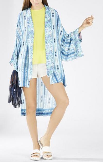 Version chic et plus habillée, on investit dans un poncho coloré à l'imprimé ti-die comme celui-ci. Parfait agencé avec un pantalon de denim blanc, il pourrait tout aussi bien se porter comme tunique sur une paire de legging noir, ceinture de cuir à la taille.
