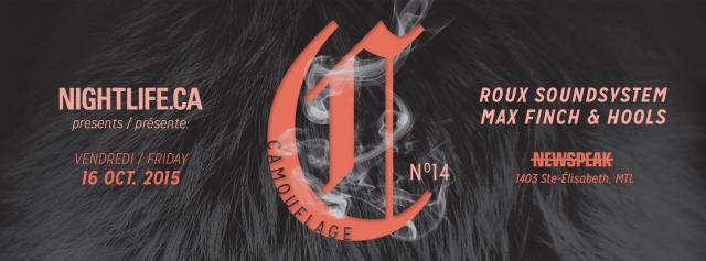 Réservez votre vendredi soir prochain. Rendez-vous incontournable pour les fans de house montréalais, la soirée Camouflage se transporte au Newspeak et accueillera nul autre que le duo montréalais Roux Soundsystem.