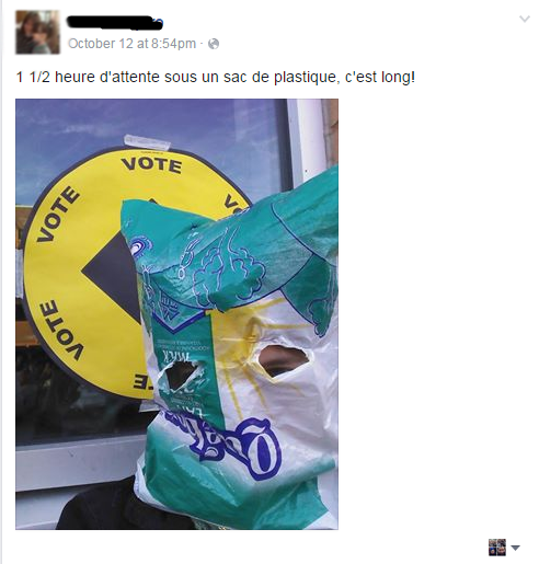 Toute la controverse entourant ce fameux niqab atteint de sommets disproportionnés depuis le début de la campagne électorale. Avec plus de 1000 attendings, l'évènement Je vote voilée est l'emblème de tout ce méCONtentement de la population. Le 31 octobre prochain, rendez donc hommage à toute cette bande de génies en adoptant l'un de leurs magnifiques looks.