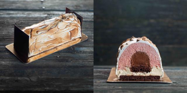 Notre homme de beignes national a l'horaire chargé, ces temps-ci. En plus de cuisiner sa vie sur le plateau de Signé M à TVA, où il est chroniqueur sucré, lui et son chef pâtissier Cédrik Lalande nous ont concocté de magnifiques desserts pour terminer les grandes veillées. J'ai un petit faible pour la nostalgie du trio de saveurs napolitaines de la "Baked Alaska", mais j'avoue que je ne dirais pas non à la bûche au foie gras. #Questionsexistentielles.