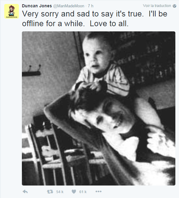 Duncan Jones ne pouvait mieux exprimer sa tristesse que par cette photo de son père et lui étant petit.