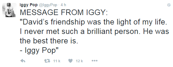 Sans photo, avec uniquement les mots, la star du rock s'exprime : "L'amitié de David illuminait ma vie. Je n'ai jamais rencontré quelqu'un d'aussi brillant".