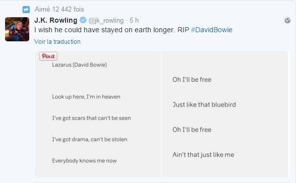 La célèbre écrivaine J.K Rowling a noté de sa plus belle plume : "J'aurais aimé qu'il reste sur terre plus longtemps. RIP."