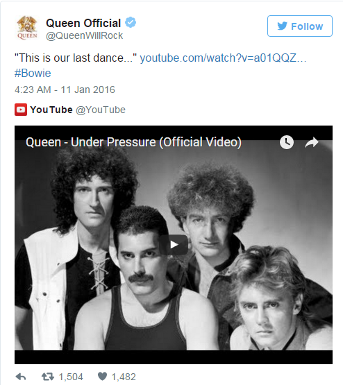 Quant à Queen, le groupe offre "leur dernière danse" avec Under Pressure, un immense titre en collaboration avec Bowie, qui a fait vibrer la planète entière.
