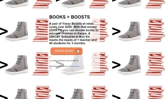 On te suggère par exemple d'acheter un vêtement de la collection de Kanye, Yeezus, à 700 $, ou de nourrir avec cette même somme une école de 200 enfants et ses 10 professeurs pour un mois. On compare aussi le prix d'un billet de spectacle pour un de ses concerts à 250 $ avec le prix des condoms nécessaires à un village entier du Kenya pour éviter la propagation du VIH.