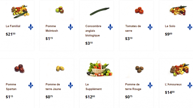 Il n'y a pas 1000 choix, mais à ce prix-là, tu seras vite conquis! Tu as le choix : tu peux choisir tes articles individuellement (un sac de pommes McIntosh d'une livre te coûtera, par exemple, 1,15 $, et tu auras la même quantité de patates pour 0,75 $) ou tu peux prendre un panier. Entre 9 $ et 21,50 $, j'ai rarement vu autant de légumes pour un si petit prix!