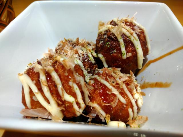 Tokoyaki (boulettes de pieuvres frites). Le goût de pieuvre est juste parfait sans être trop puissant. C'est croustillant, moelleux et parfaitement salé.