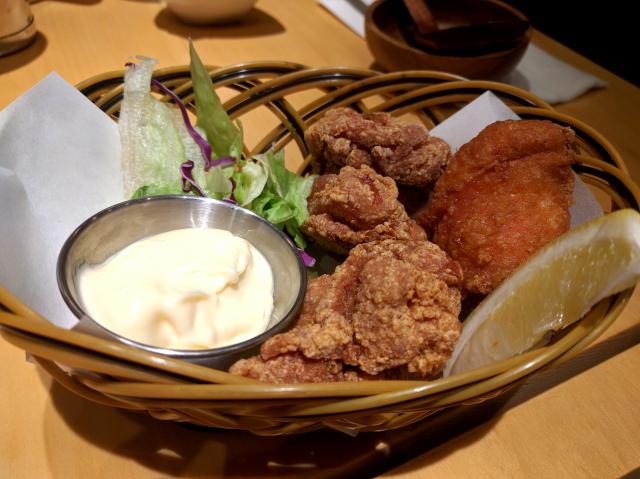 Le karaage (poulet frit). Après le ramen, c'est probablement mon obsession actuelle! La panure est bien croustillante, dorée, habilement assaisonnée et le poulet est tendre à l'intérieur. Une touche de mayonnaise question de rajouter un peu de corps gras et de saveur. Parfait!