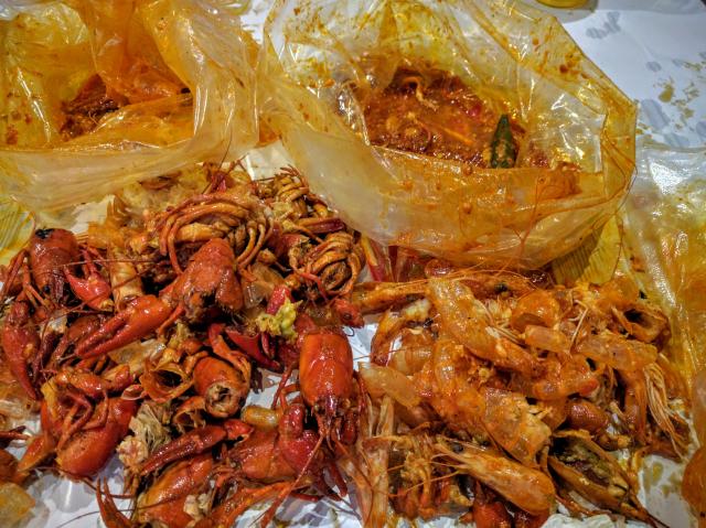 Si vous aimez manger des fruits de mer épicés, vous serez servis à souhait. Malgré le mur derrière le bar exhibant une pléthore de bières issues de micro-brasseries, seules quelques bières commerciales y sont servies. J'espère qu'ils sauteront sur l'occasion d'offrir plein de bonnes bières locales pour accompagner le repas!