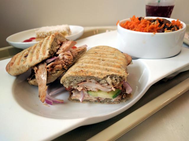 Le shawarma au poulet avec mayo à l'ail était un peu décevant. Il manquait un peu de goût et surtout la mayo manquait d'ail! Au point de se demander s'ils s'étaient trompés de sauce. Chapeau par contre pour le carré à la lime et au coconut. Dessert parfaitement fait et très bon! Belle croûte dense et l'appareil à la lime était suret et juste légèrement sucré. Le coconut apportait une petite touche de parfum qui complétait très bien l'ensemble.