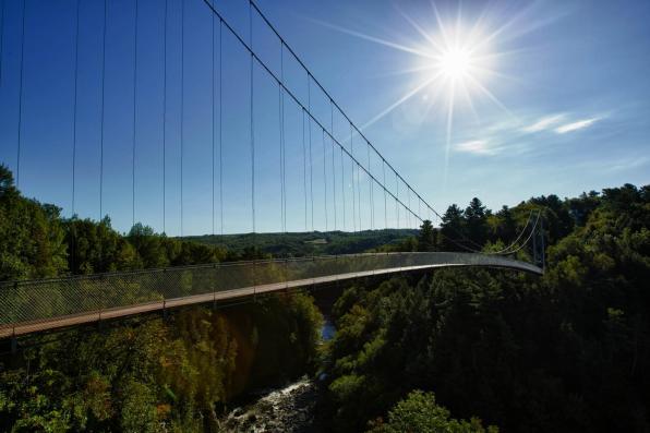 Situé pile-poile dans la ville de Coaticook, ce parc national abrite la très belle gorge du même nom, de 750m de long et de plus de 50m de hauteur. De plus, c'est l'occasion d'aller marcher le populaire sentier pédestre illuminé la nuit signé Moment Factory ainsi qu'un réseau de plus de 20km de vélo de montagne. Un très beau parc à aller visiter sans attendre. Plus d'infos ici.