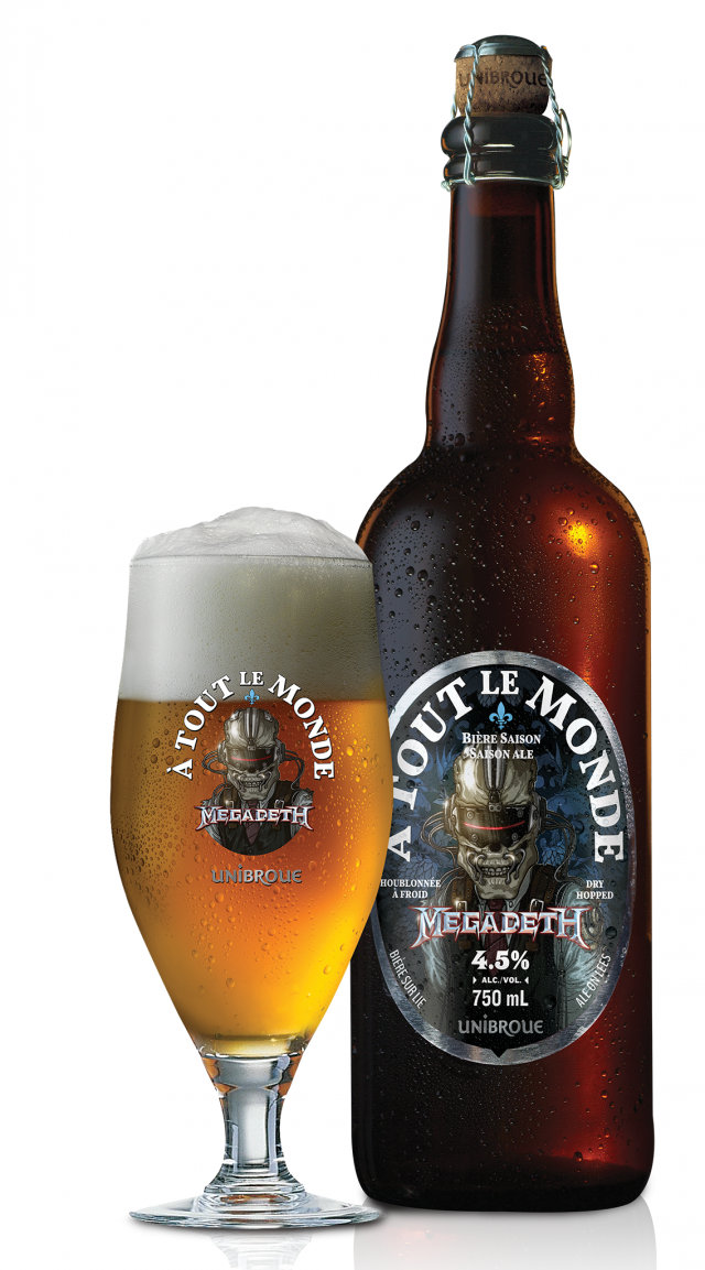 Tu as peut-être entendu parler de la toute nouvelle bière Unibroue qui est sortie sur les tablettes au cours des derniers jours. Une bière pensée et réalisée par le maître brasseur de l'entreprise québécoise, Jerry Vietz, en collaboration avec nul autre que le chanteur du légendaire groupe Megadeth, Dave Mustaine. Son nom : À Tout le Monde (comme la chanson !).