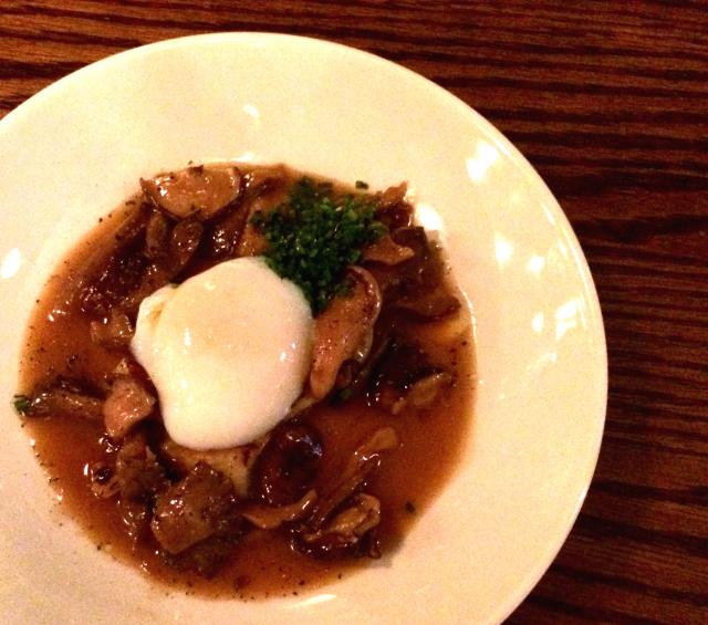 À elle seule, cette poêlée de champignons en sauce mérite le détour en contrée Petite-Italienne, que vous soyez sur le Plateau ou à Hochelag'. Servie avec un œuf coulant, le jaune se laisse suavement choir sur cette préparation déjà riche, déjà crémeuse, créant une harmonie des textures dans la continuité plus que le contraste. Ça marche. On a terminé ça sans gêne à grands coups de miche, jusqu'à la dernière goutte, dans un moment de plaisir intense.