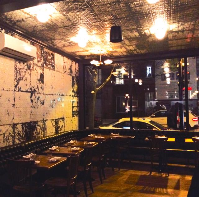 Le décor est chaleureux et intemporel. À la fois très vintage, avec ses longues banquettes capitonnées de cuir noir et ses murs délavés, mais en même temps résolument ancré dans l'aujourd'hui : on se croirait dans l'un de ces tableaux Pinterest inspirés de l'esthétique des branchissimes banlieues de New York.