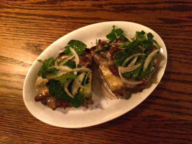 Deuxième coup de cœur pour la tartine à la moelle, bourgots et vieux cheddar qui là encore joue sur des saveurs rondes et riches, mais surmontées cette fois d'une très pimpante salade de persil. Une combinaison originale, qui fait changement des os à moelle classiques qu'on sert partout en ce moment.