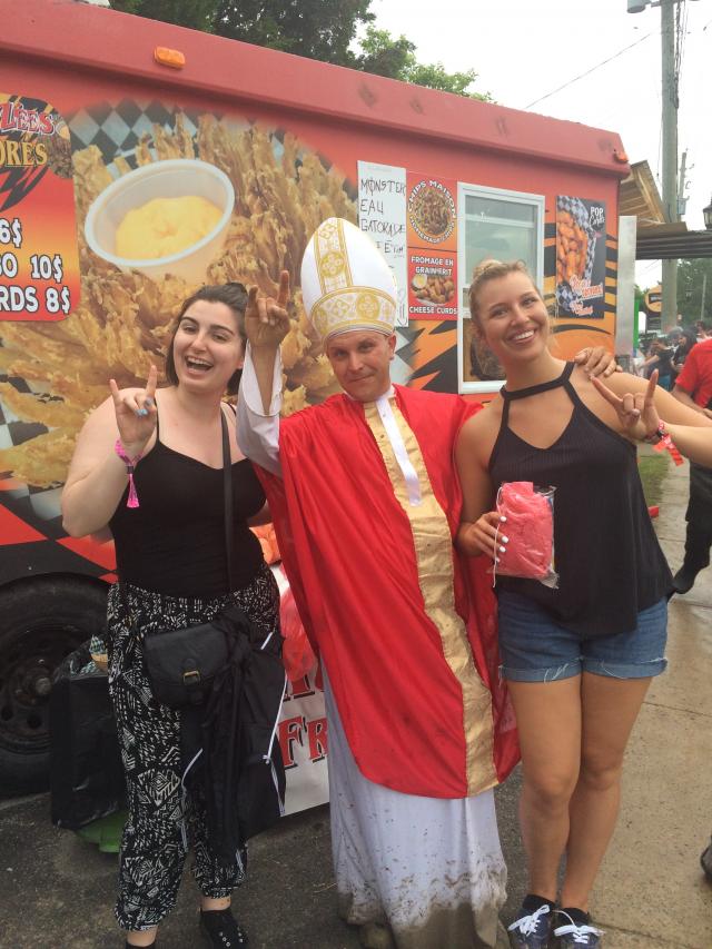 Dans une foule de métalleux et de punks, on retrouve bien évidemment une grande majorité de gens habillés en noir. Par contre, chaque année, très nombreux sont les festivaliers qui font preuve de beaucoup d'audace et d'originalité côté vestimentaire. Des habits de superhéros comme Batman, Deadpool et les Power Rangers à des filles habillées en sirène et en ballerine, en passant par des gars en speedo, en Jésus, et même le PAPE (qu'on a croisé au show de Jérémy Gabriel, d'ailleurs), on en voit véritablement de toutes les couleurs.