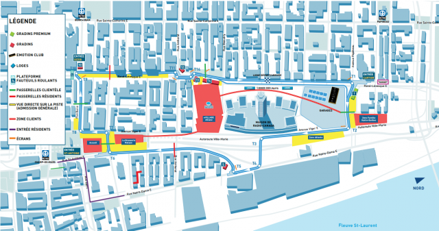 Il faut savoir que la course débutera sur la rue René-Lévesque, juste en face de Radio-Canada, vis-à-vis la rue Panet. Les voitures tourneront ensuite sur Papineau, puis Viger. Ensuite, elles se dirigeront sur Notre-Dame, pour finalement revenir sur Viger, emprunter Berri puis retourner sur René-Lévesque, jusqu'à la ligne de départ/arrivée.
