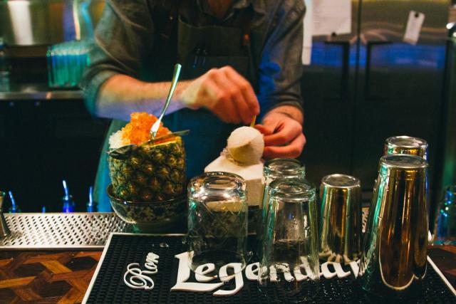 Situé en plein cœur du quartier chinois, Le Mal Nécessaire est un bar à inspiration Tiki qui offre une énorme variété de cocktails exotiques en majorité à base d'ananas et de noix de coco. Même que certains d'entre eux sont servis dans un ananas une noix de coco ou un fruit vide!