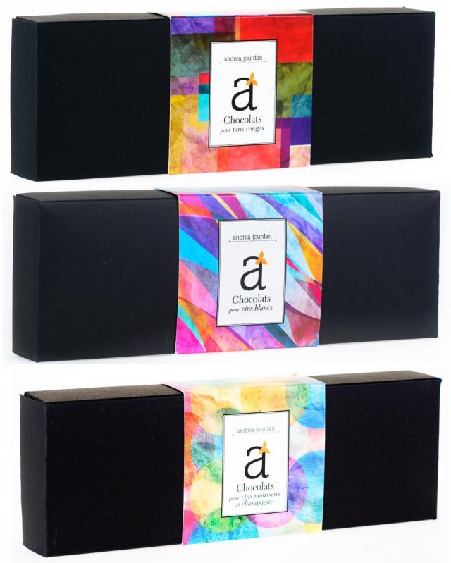 1. Coffrets de chocolats pour vins blancs, pour vins rouges ou pour mousseux et champagne d'Andrea Jourdan La Boutique