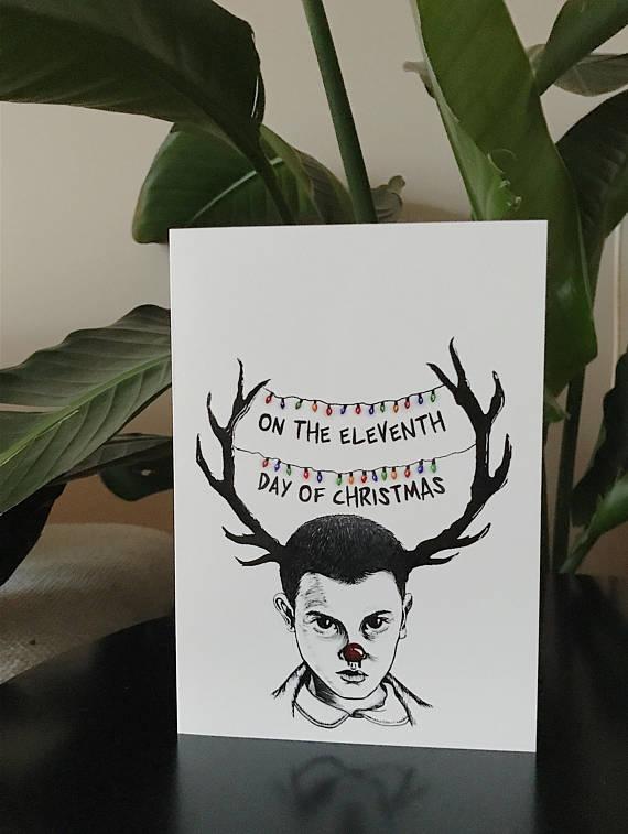 Finalement, si tu es du genre à offrir des cartes de Noël avec tes cadeaux, on trouvait que celle-ci était vraiment réussie. Tu seras certainement plus inspiré d'écrire tes souhaits des Fêtes quand y'a la face d'Eleven en version p'tit renne au nez rouge sur la carte!
