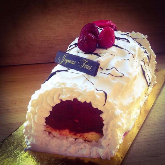 Péché Glacé sur l'avenue Mont-Royal revient encore une fois cette année avec ses bonnes bûches de Noël. L'endroit étant spécialisé dans la glace artisanale, tu peux commander ta bûche à saveurs de vanille & crème de marrons, pistache & vanille, chocolat & poire, sorbets mélangés, nougat aux fruits confits, vanille & chocolat & framboise ainsi que chocolat & noisette. Ensuite, il y a trois formats de disponibles : 6 pouces, 8 pouces, et 10 pouces.