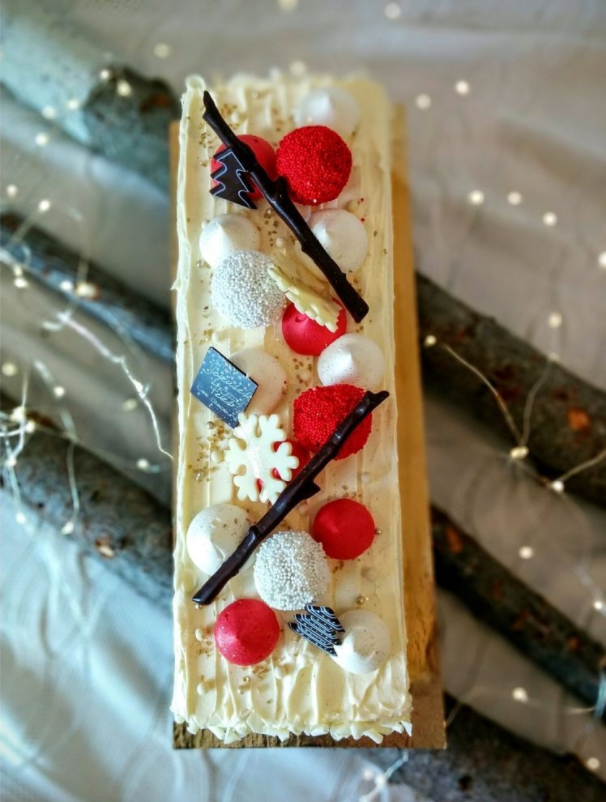 Source: page Facebook Patrice-PâtissierPour faire différent un peu des bûches au chocolat au lait et chocolat noir, on te propose celle de Patrice Pâtissier qui est au citron et mélilot. Cette dernière est faite de mousse au chocolat blanc Opalys et mélilot, crème aux agrumes et gâteau moelleux au citron. En plus d‘être très belle, elle fait davantage dans la légèreté que les autres alors ça termine bien un bon gros souper des Fêtes.