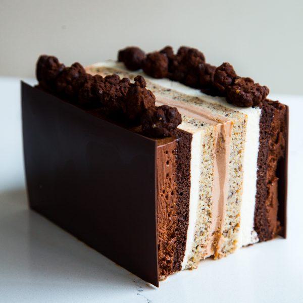 Ô Gâteries est en fait une pâtisserie de Longueuil qui vient d'ouvrir également au Complexe Desjardins au centre-ville de Montréal. Pour 2017, l'endroit propose quatre saveurs de bûches différentes. Celle ci-haut est la Guayaquil composée de mousse au chocolat noir 64%, crème brûlée à la vanille, croustillant praliné amande et noisette ainsi que du biscuit au chocolat.