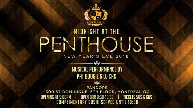 3) NYE 2018 – Midnight at the Penthouse au Pandore