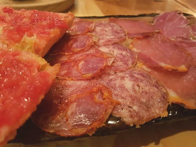 Crédit photo Sophie GinouxSe rendre dans une taverna espagnole sans goûter à de la charcuterie ibérique serait honteux, surtout après avoir vu les produits du frigo du rez-de-chaussée. C'est donc avec une bonne planche de pata negra, de longe de porc et de chorizo, accompagnés de pan con tomate (morceaux de pain revêtus de tomates broyées et d'un filet d'huile d'olive) que je poursuis mon repas.