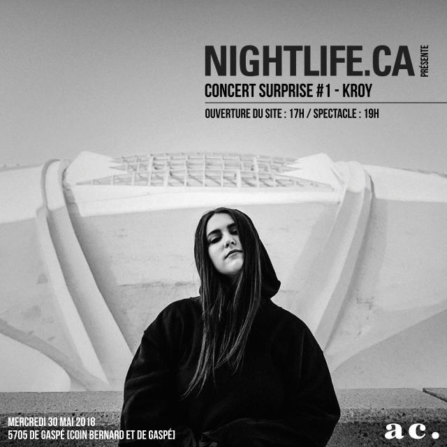 Aujourd'hui, Nightlife.ca est fier de t'annoncer qu'en prévision de la sortie de son tout premier album solo, Kroy se donnera en spectacle le mercredi 30 mai prochain à Aire Commune. En effet, dans le cadre de ce show surprise, la montréalaise Kroy livrera une prestation gratuite et ouverte à tous qui prendra place sur la terrasse extérieure la plus cool en ville! Sur place, il sera possible d'entendre certains morceaux de son prochain album. Cocktails, soleil, food trucks et ambiance dynamique sont au rendez-vous!