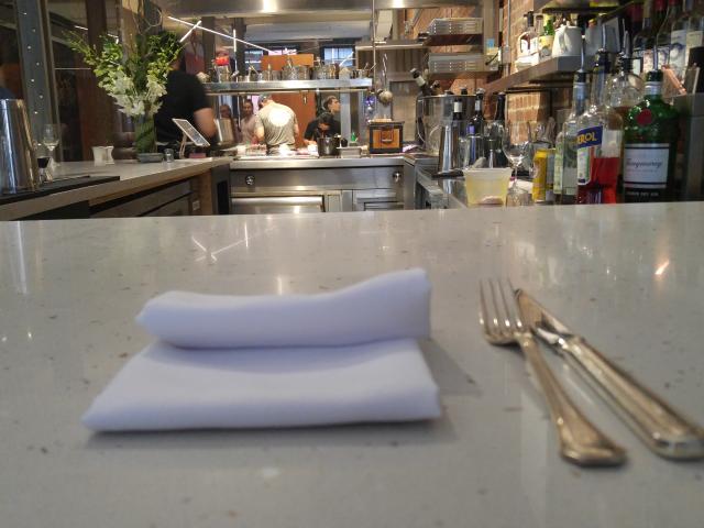 Prenons ce plat de ballotin de volaille, combinant techniques et saveurs des plus classiques, mais oh combien jouissifs ! Imaginez le volatil parfaitement cuit, surmonter de la richesse des morilles et de la finesse des fleurs de courgette, le tout perlé d'un jus bien corsé et d'eau de courgette. On reste dans la prudence mais, dans son exécution parfaite, ce genre d'œuvre n'est pas monnaie courante à Montréal.
