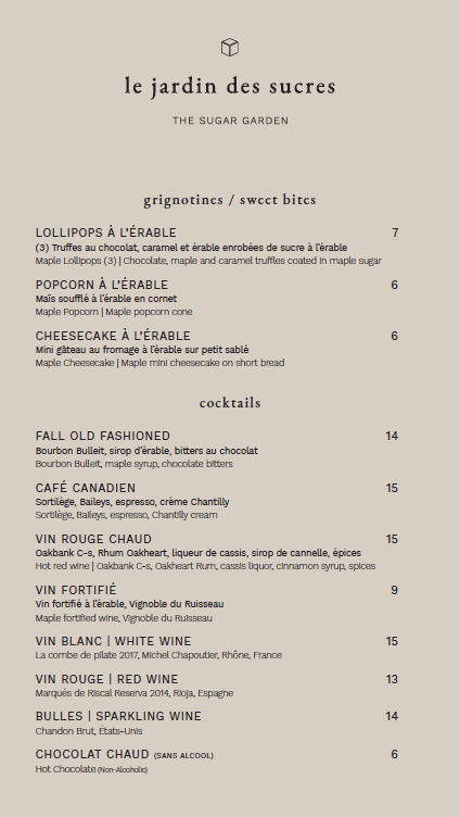Cette année, l'Hôtel William Gray a un nouveau concept à vous présenter: Le jardin des sucres. Jusqu'au 14 avril prochain, celui-ci est ouvert à vous de 16h00 à 20h00. Voici les délices que vous propose le restaurant:
